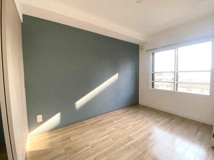洋室(4帖)は落ち着いたアクセントクロスが印象的で、コンパクトながらベッドやデスクを置いてもしっかり“自分の空間”に💭