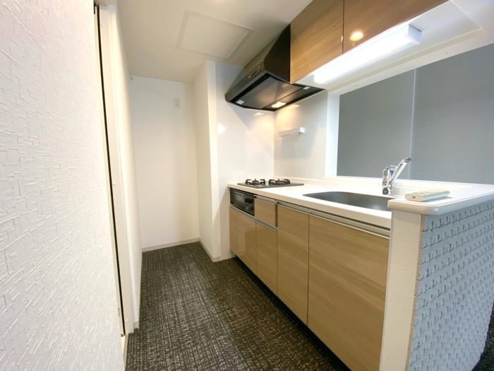 キッチンは2口ガスコンロ付きのシステムキッチン!