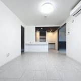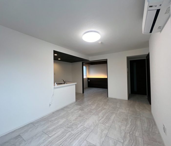 LDKは、石目調フロアが印象的な、ホテルライクな雰囲気の空間