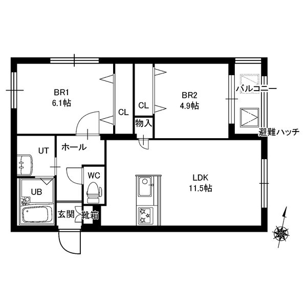 【LDK11.5帖/洋室6.1帖/洋室4.9帖】